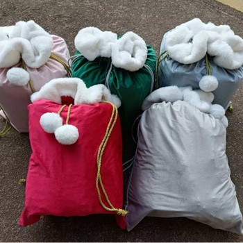 大きな50x70cmベルベットクリスマスギフトバッグ引き出し付き再利用可能なパーソナライズされたクリスマスパッケージ収納ポンポン付き